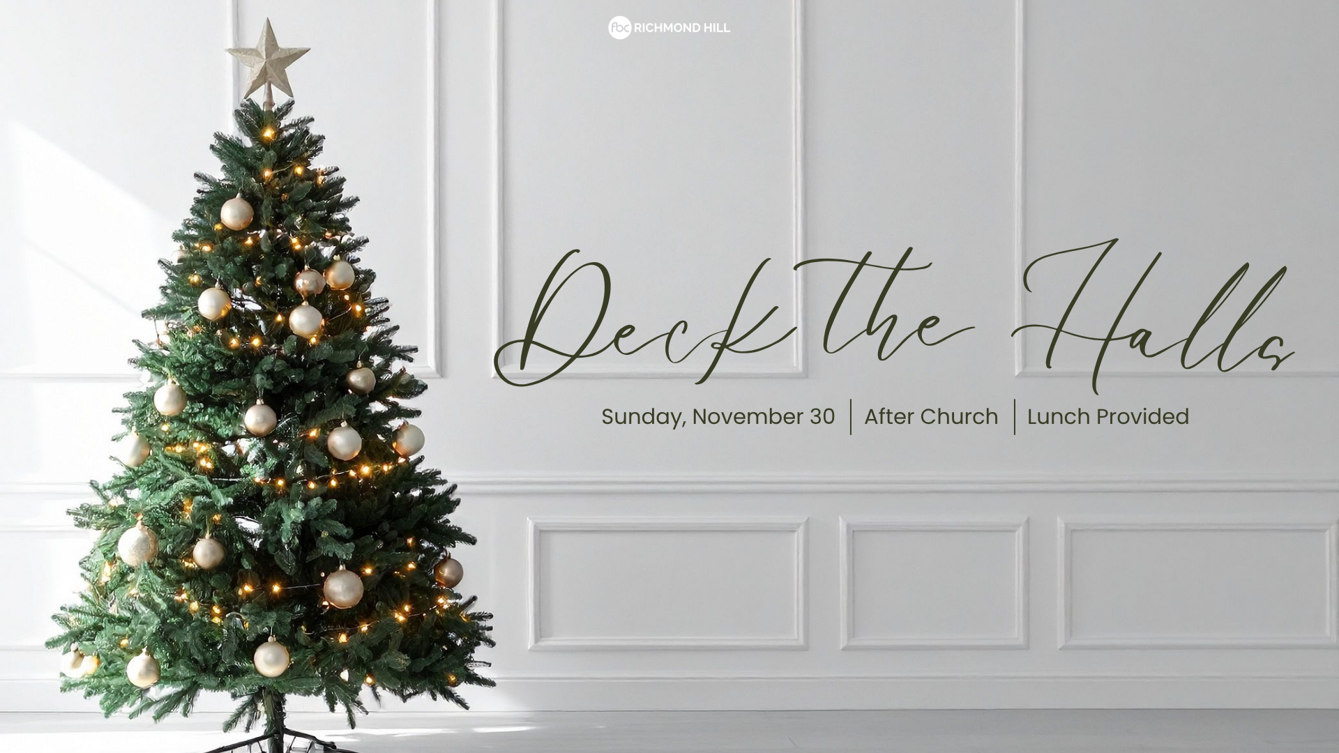Join us after church on Sunday, November 30th, to help us decorate our Worship Center for the Christmas season! Lunch will be provided.